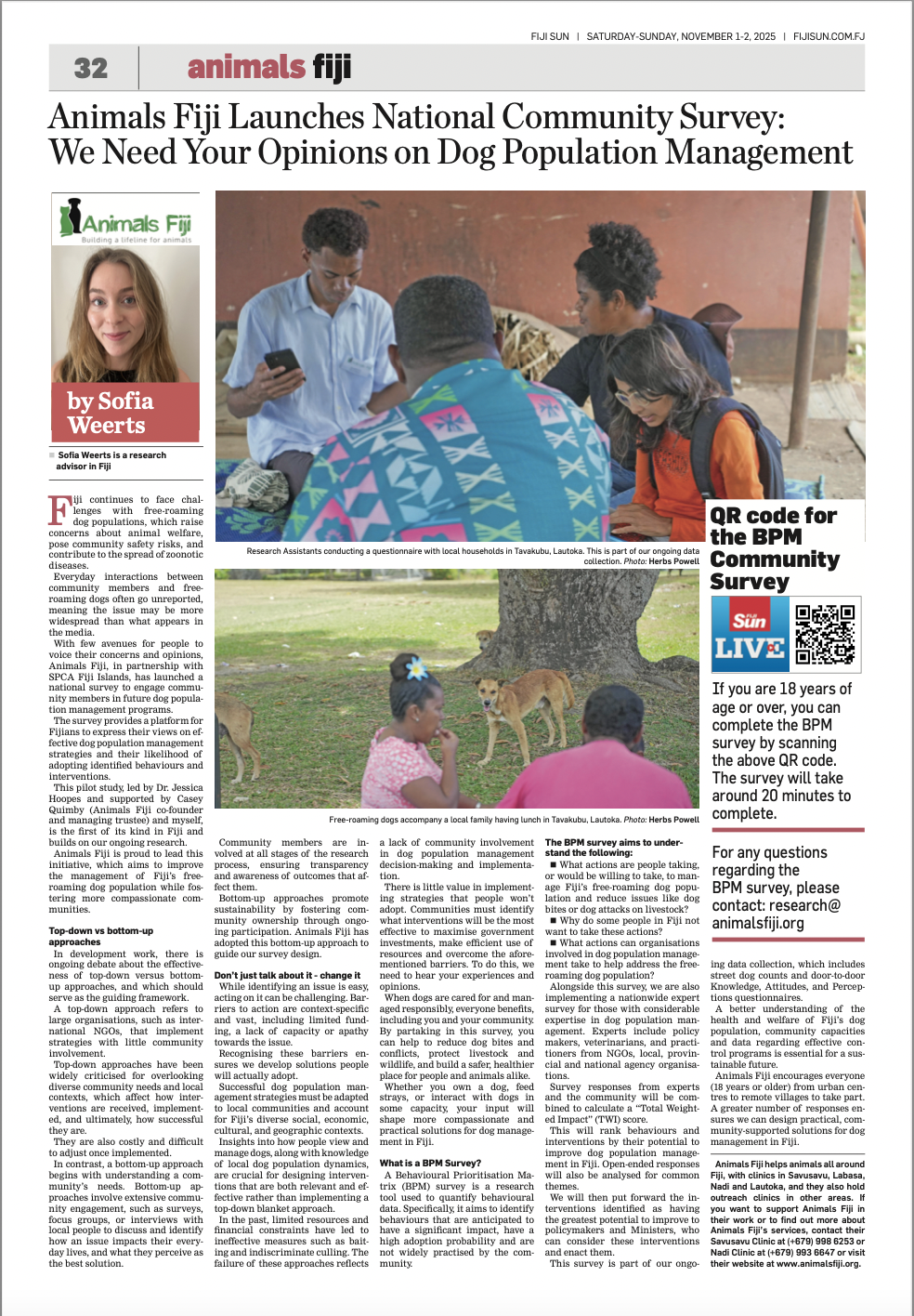 We have launched a national survey to learn which Dog Population Management programs are most likely to work in Fiji.